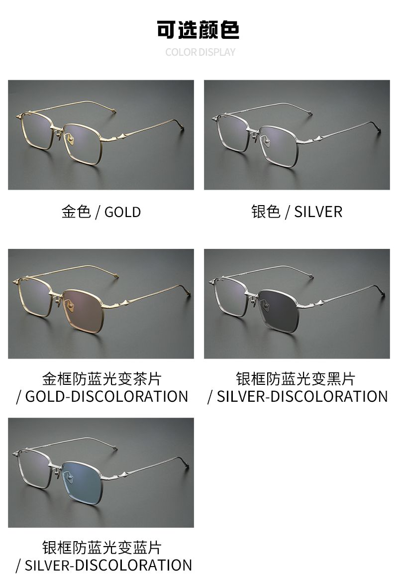 纯钛大方框 变色镜片贵20元 镜片宽54 型号aba
