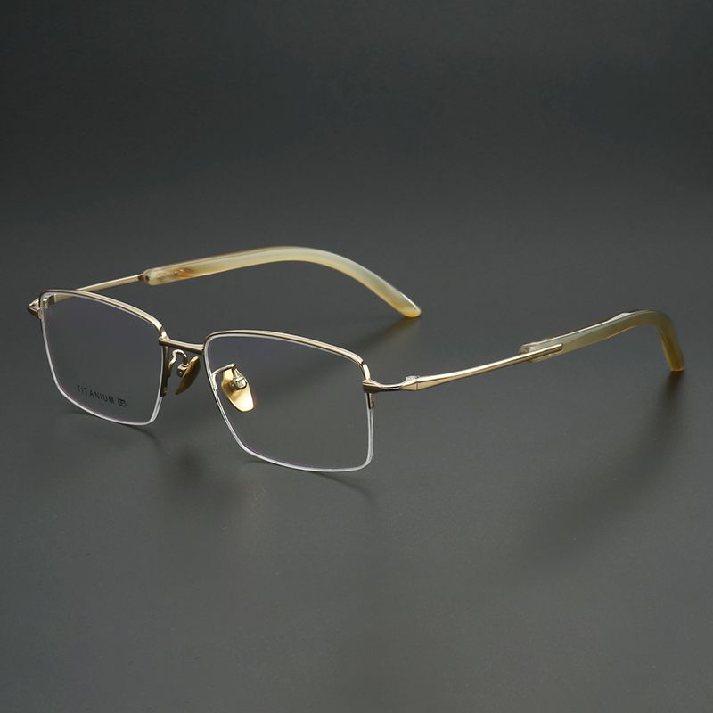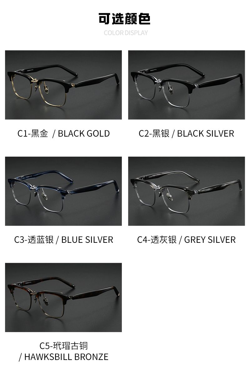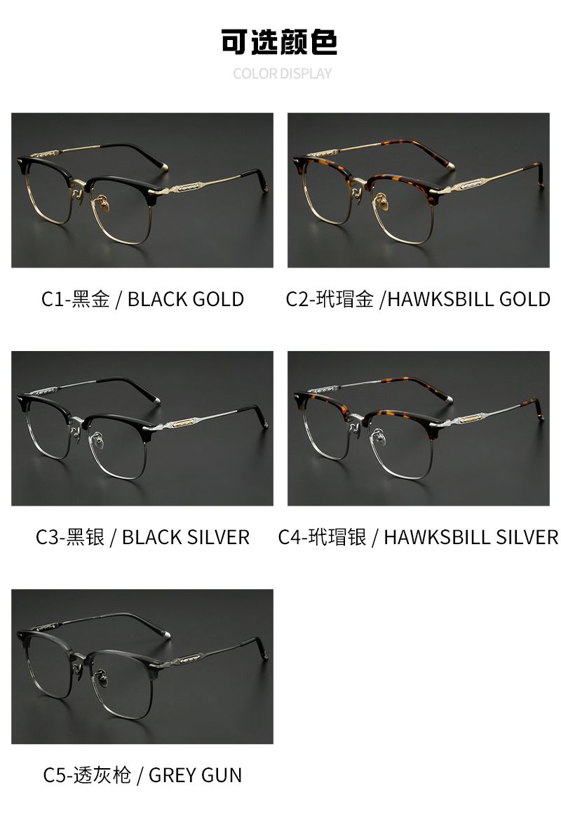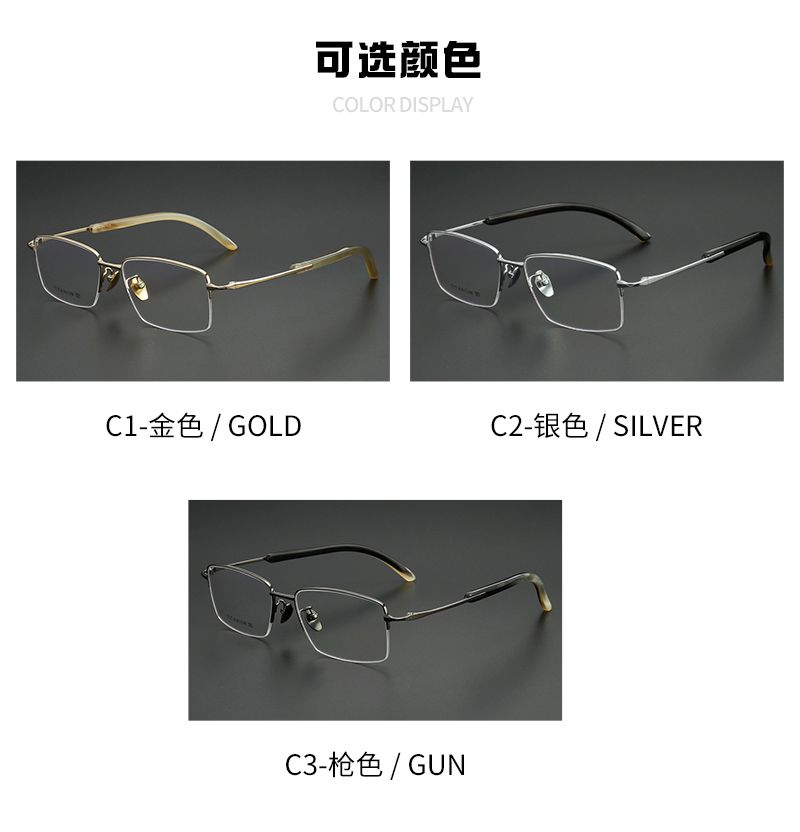纯钛+牛角镜腿半框 镜片宽55 型号5802
