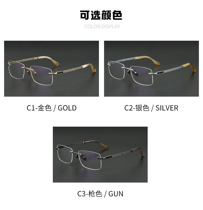 男款纯钛+牛角 镜片宽56
