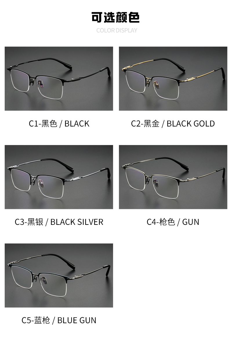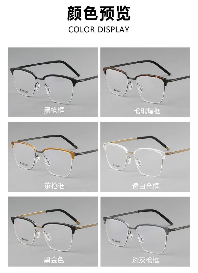 纯钛半框男款商务 镜片宽58