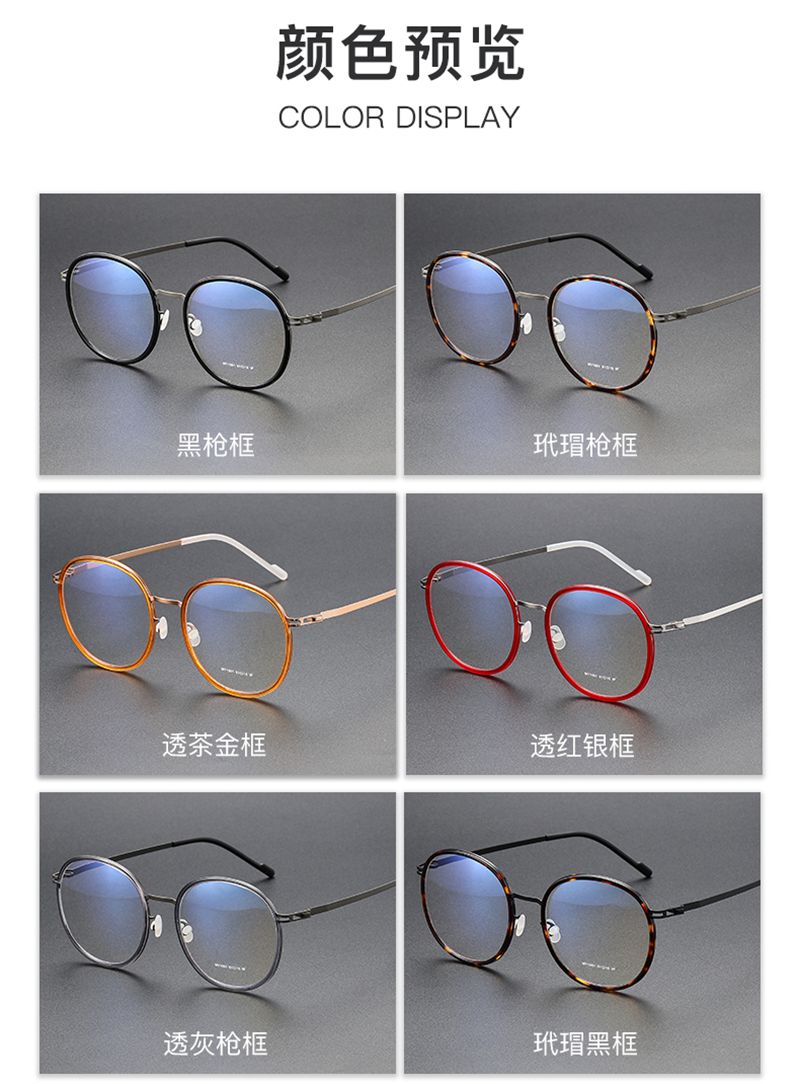 纯钛眉毛架小框男女同款 镜片宽50