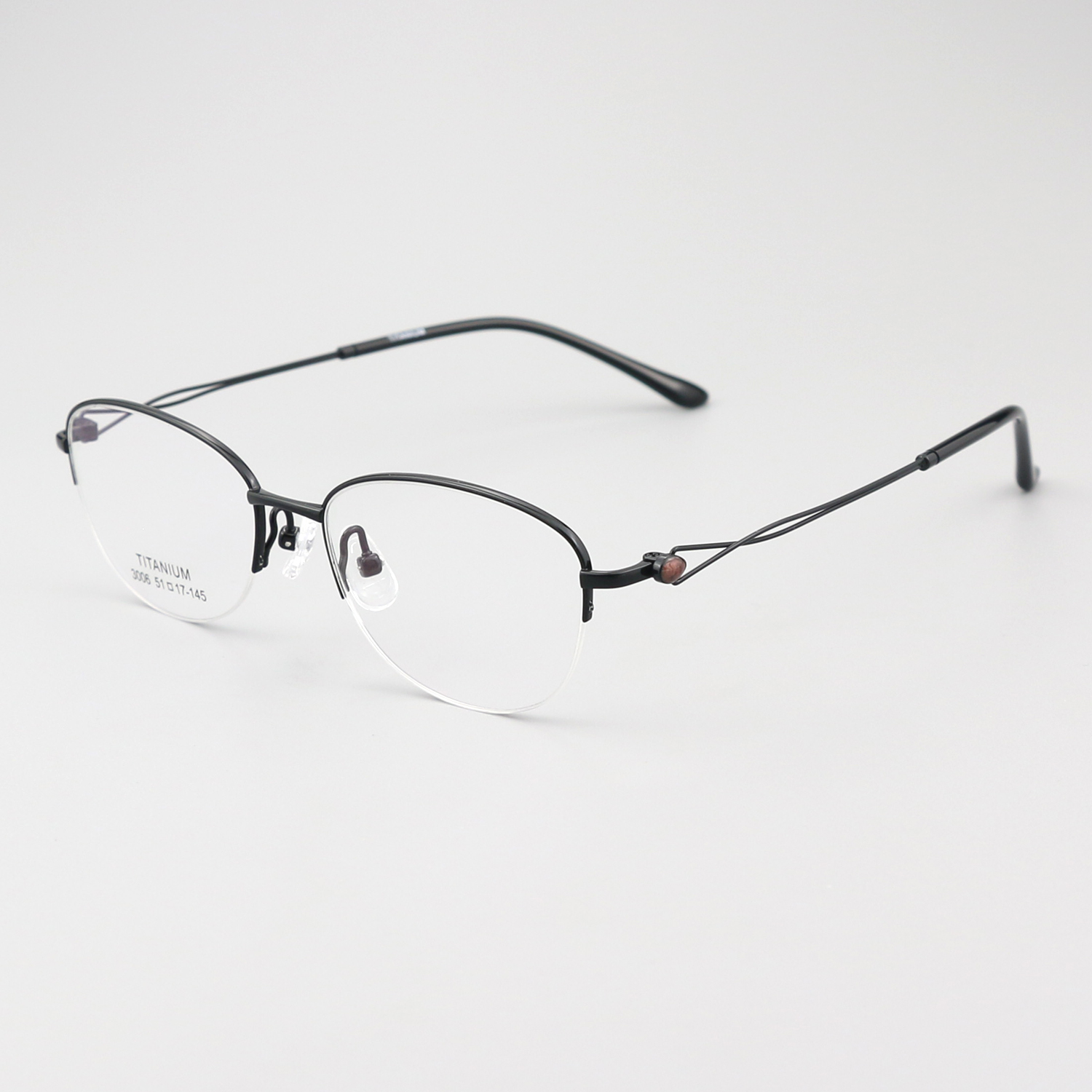 纯钛超轻弹性镜腿半框 镜片宽53-55 型号2988