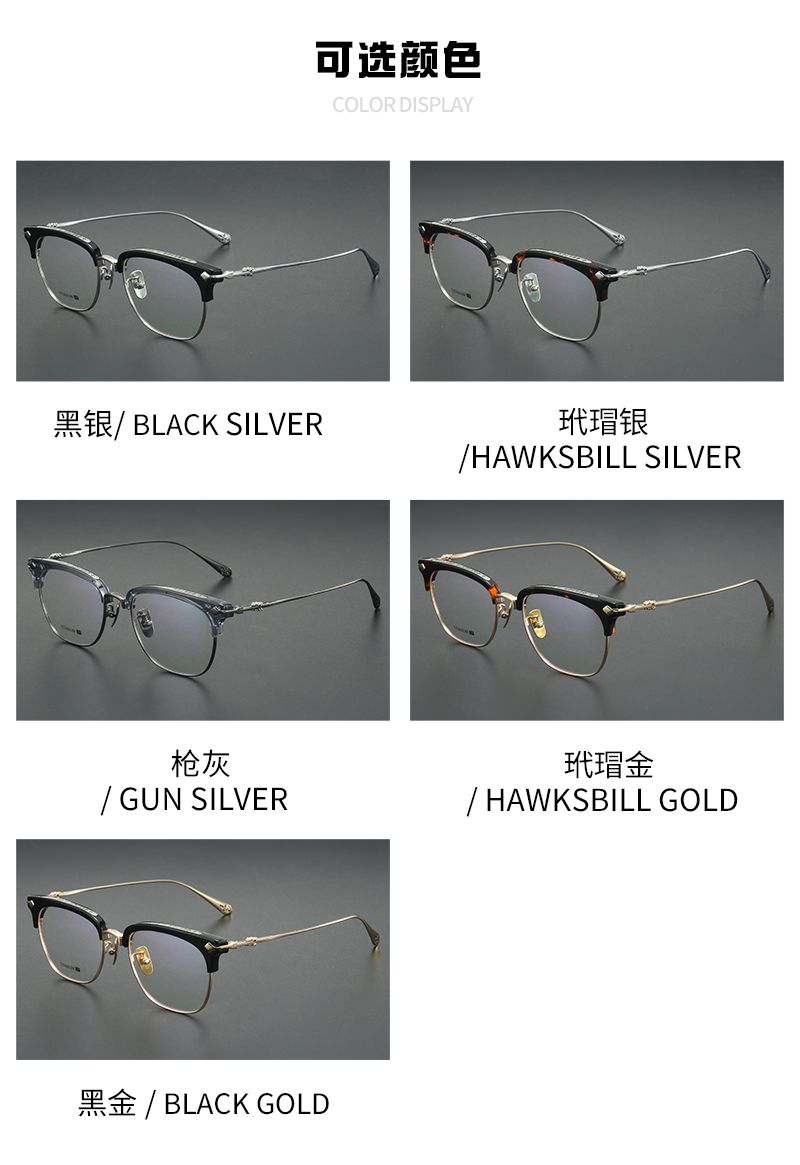 纯钛男款商务半框大框 镜片宽58 型号2912