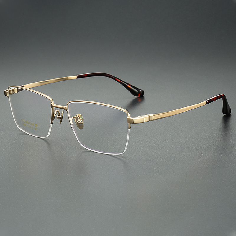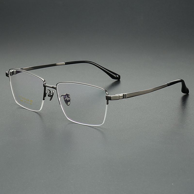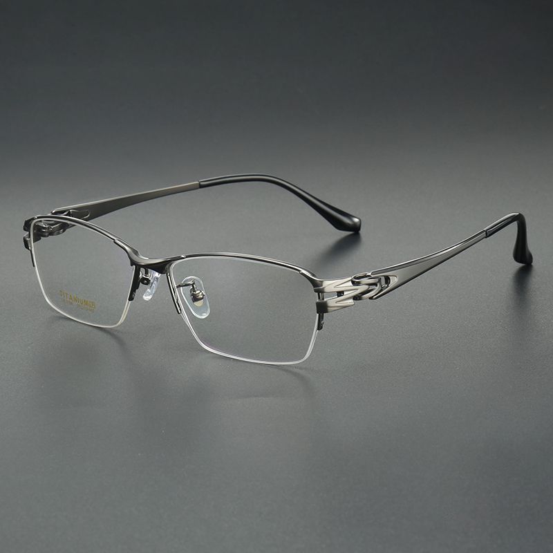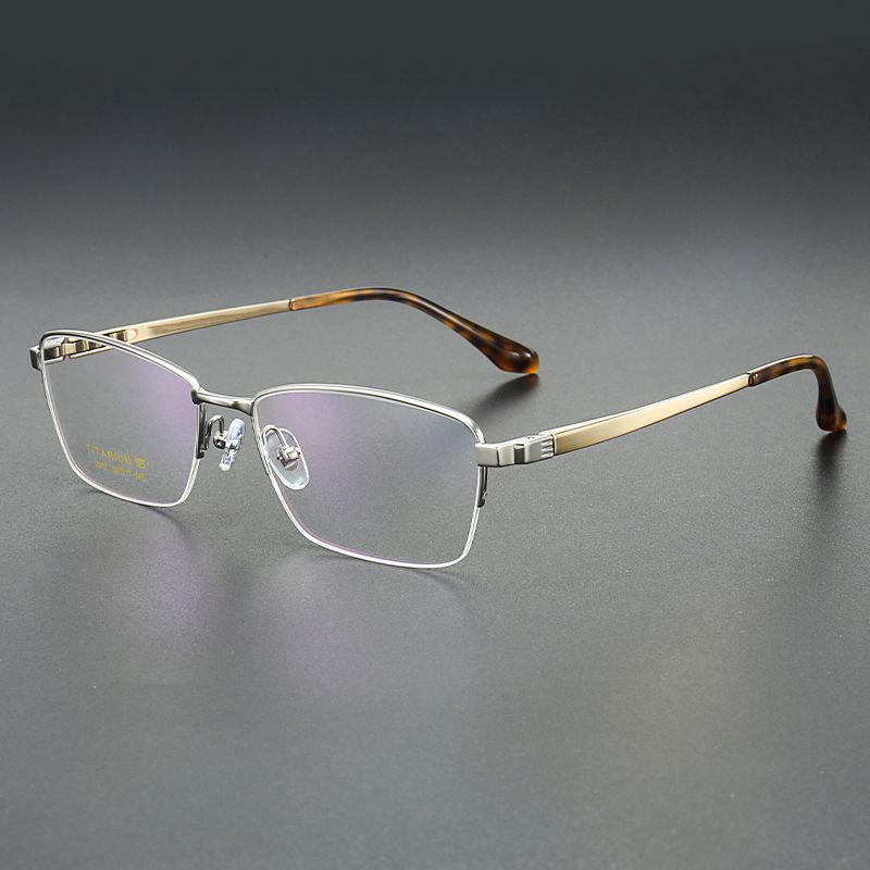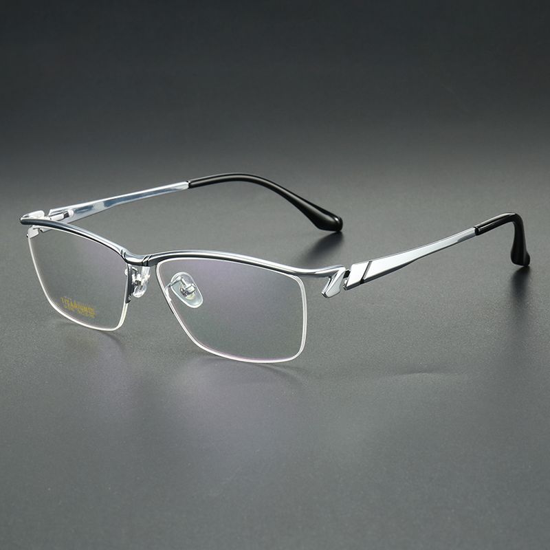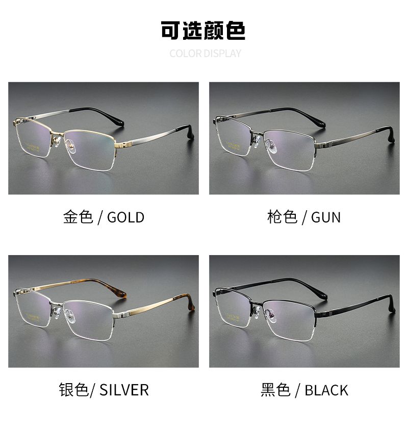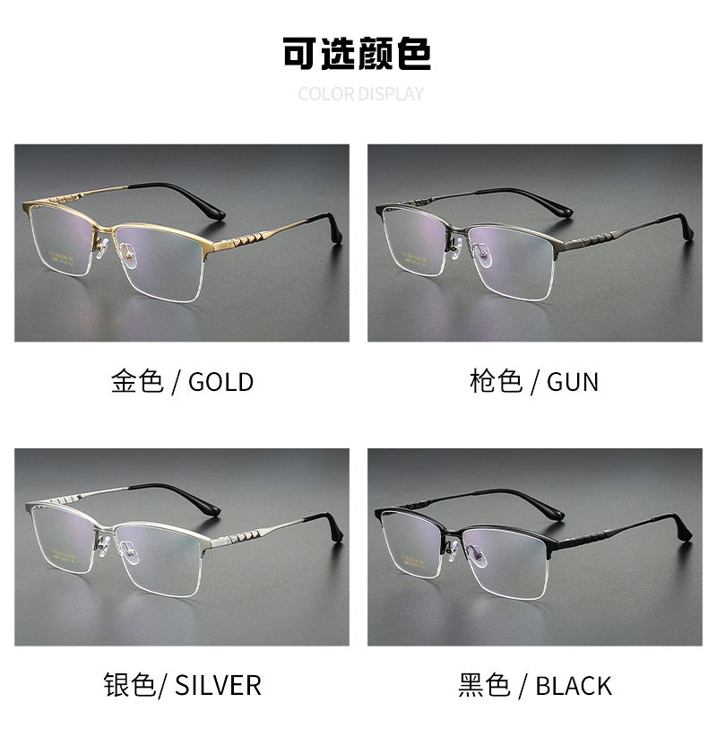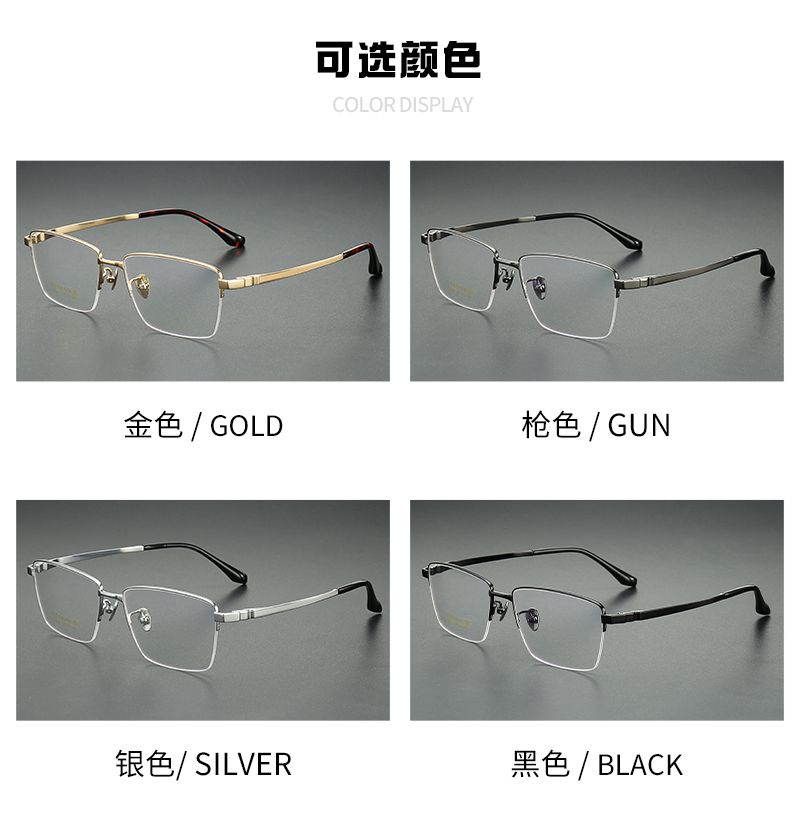 纯钛男款商务半框弹性镜腿 镜片宽57